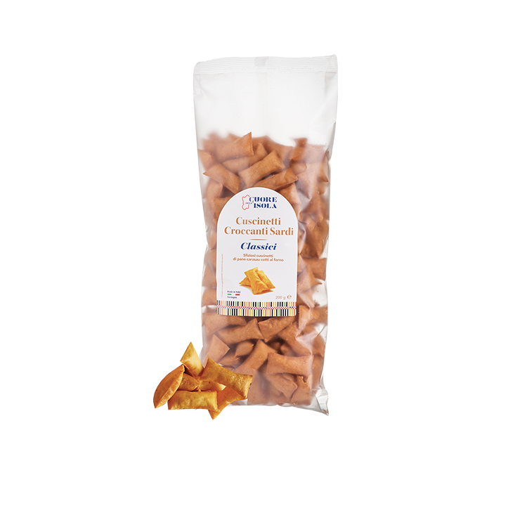 Home shop Tutti i prodotti Sfiziosi salati Cuore dell’Isola Cuscinetti Croccanti Sardi Classici 200 g